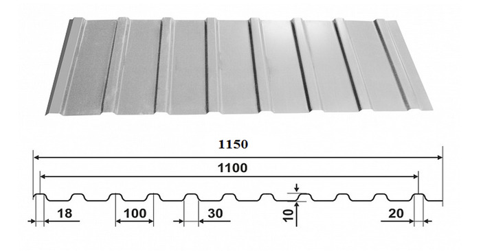 Профнастил или как его еще называют профлист, представляет собой стальные оцинкованные или оцинкованные с полимерным покрытием листы, изготовленные методом продольного проката, которые отличаются формой и высотой профиля. Чем больше высота волны изгиба и толщина листа, тем выше его несущая способность.